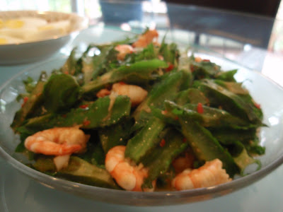 and Four-Angled Beans stir-fried with Prawns & Belacan. This was such a hit that they even cleaned up all the gravy!
