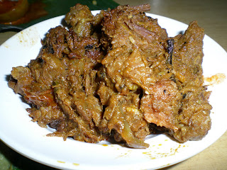 The service crew then came by with a tray on which were small plates of all kinds of dishes (kinda like the dim sum trays) and we chose the fried sotong, fried bittergourd and dry mutton curry.