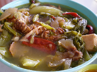 They use the chicken bones etc to cook the Sour Vegetables. All the left-over meats are boiled with mustard leaves (kai choy), dried chillies and assam pieces. The resultant sour stew is a great appetizer. Besides this sour veg, they also have the obligatory boiled greens like sawi with oyster sauce.