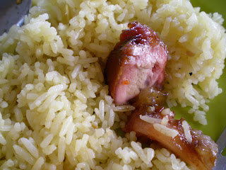 This Cha Siew Rice outlet in Section 17 PJ has many followers. It’s located in a corner coffeeshop – Choo Yien is the name – beneath the flats in Jalan 17/13 (which is nesxt to the SK Sri Damai). The place starts getting busy as early as 11.30am for lunch and if you go there after 12.30pm, you can be sure the place is not only full, but almost every table will have people waiting for it! It’s run by 2 brothers, one who chops the meats and the other is the order-taker cum promotions manager! This guy is very vocal, mingling and joking with the customers besides attending to their orders.