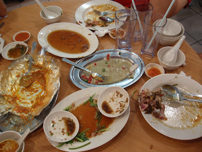 Wahh…look at the mess of empty dishes we left behind! For 4 of us, with all the extra rice and drinks, the total bill came to RM80.00 Quite good value, I would say.