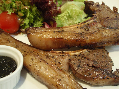 Besides pork items, the outlet also serves a very commendable Grilled Lamb Chops. Like the pork chops earlier, the lamb cutlets were well marinated and grilled according to your preference of “well done” or “medium”. The fresh mint sauce was tangy and the portion of superfresh vegetables for the salad was very generous.We also ordered a selection of their sausages to share. We had one each of the grilled Pork + Herb, Chorizo and Dynamite. The robust flavours herbs and spices in the sausages went very well with the accompanying mustard sauce.
