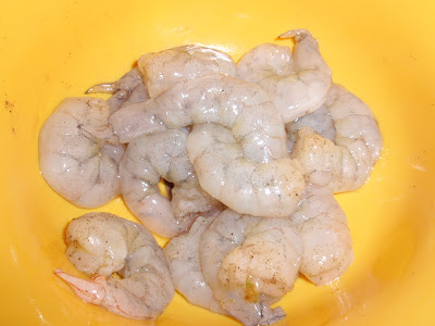 2. Put in fishcake and shrimps, continue to stir-fry for a minute.