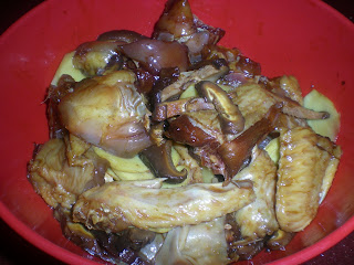 So I tossed together half a kampong chicken, Chinese mushrooms and Thai sausages and voila!