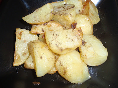 Roast the potatoes together with the chicken – it’s more yummy especially as the chicken juices get infused into them…sprinkle a teeny bit of salt & pepper on them before serving.