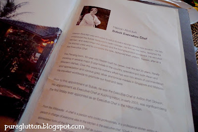 Subak is helmed by the soft-spoken smiley Executive Chef Hassan Abdullah. Chef Hassan was formerly with Avillion Port Dickson before setting up Subak and prior to that, he has the distinction of being the first malay ever appointed as Executive Chef in the Hilton Chain.