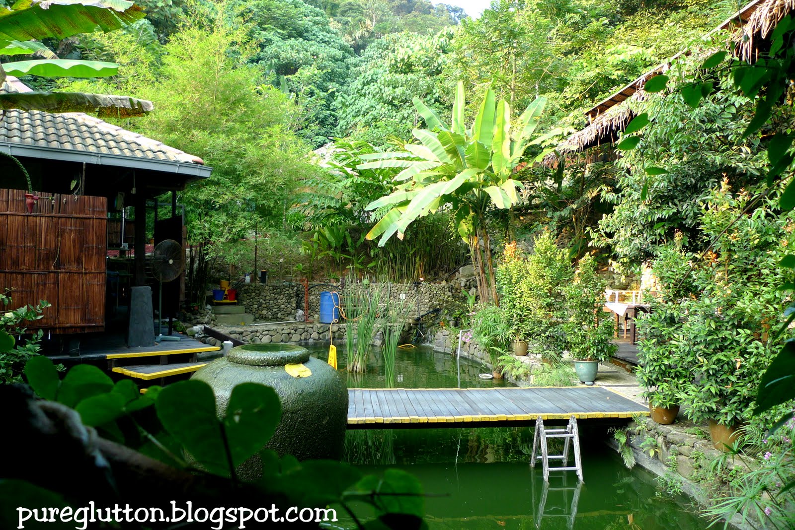 As you walk across their roofed wooden deck – Serambi, overlooking a pond…